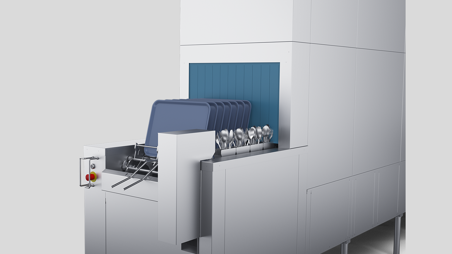 - Lavage des plateaux et des couverts en position debout