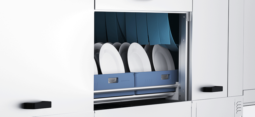 • OPTIFLOW : suppression des espaces vides entre les casiers pour une optimisation de la consommation d’eau de rinçage